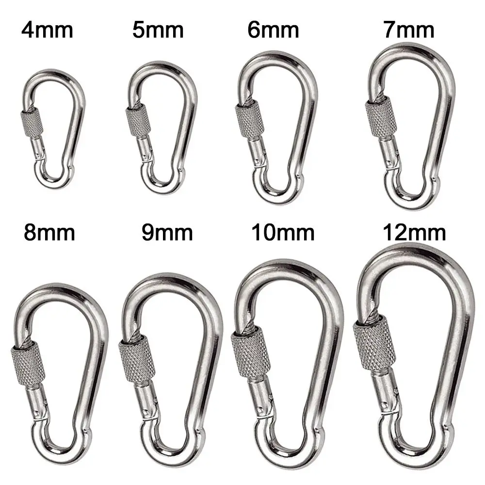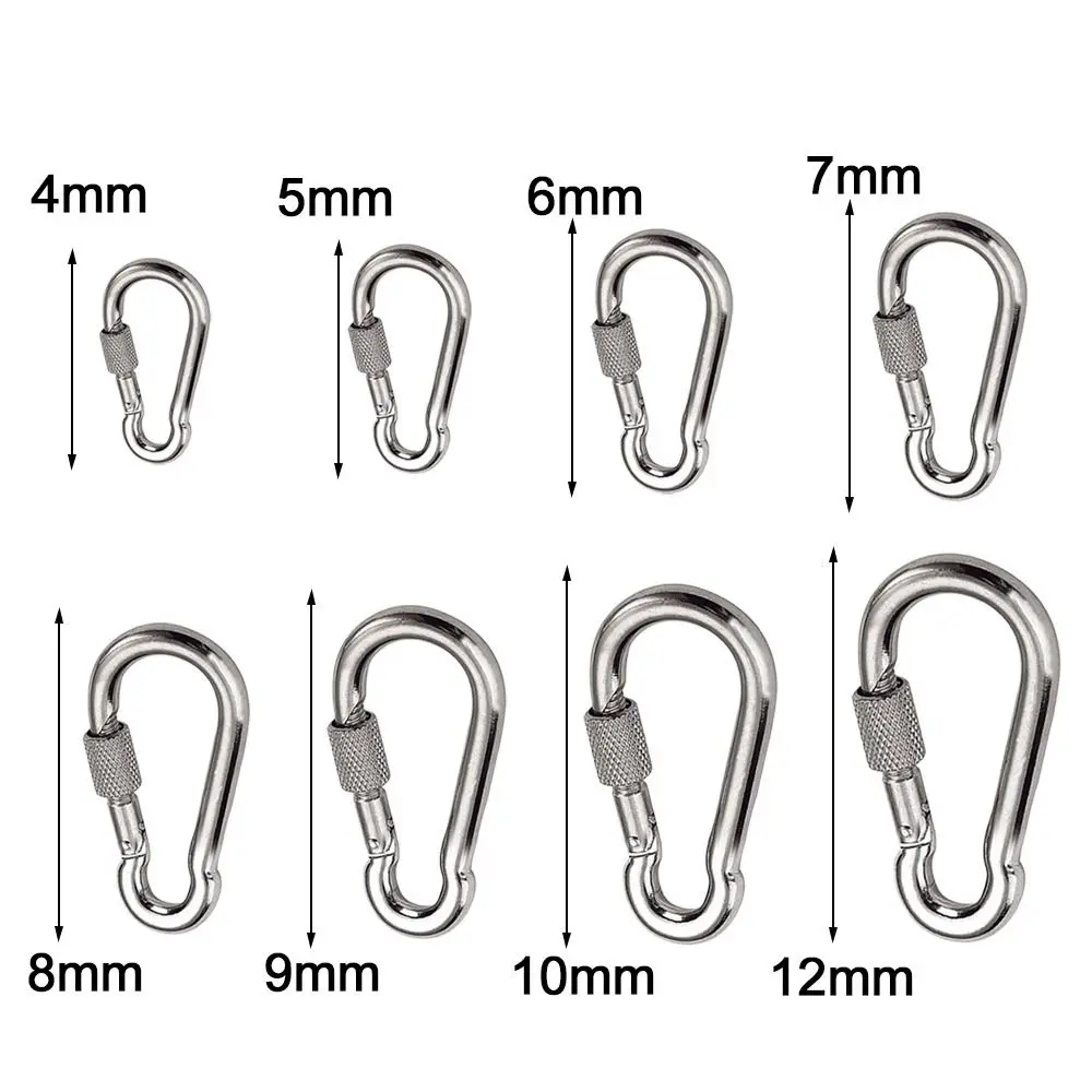 Brand new with high quality Material:M4~M12 316 Stainless Steel Can be used as spring buckle,snap button with hole,Rigging rope lanyard Feature:Carabiner with screw Color:Silver Size:M4/M5/M6/M7/M8/M9/M10/M11/M12 Quantity:1/2pcs Package Include: 1pc or 2pcs Outdoor Carabiner Notice: 1.1cm=10mm=0.39inch. 2.Please allow 1-2mm error due to manual measurement and make sure you do not mind before ordering. 3.Please understand that colors may exist chromatic aberration as the different placement of pictures.
