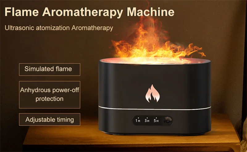 2024 USB Simulation Flame Night Light with Water Tank Humidifier Aroma Diffuser for Home Office Bedroom Atmosphere Desk Lamp New