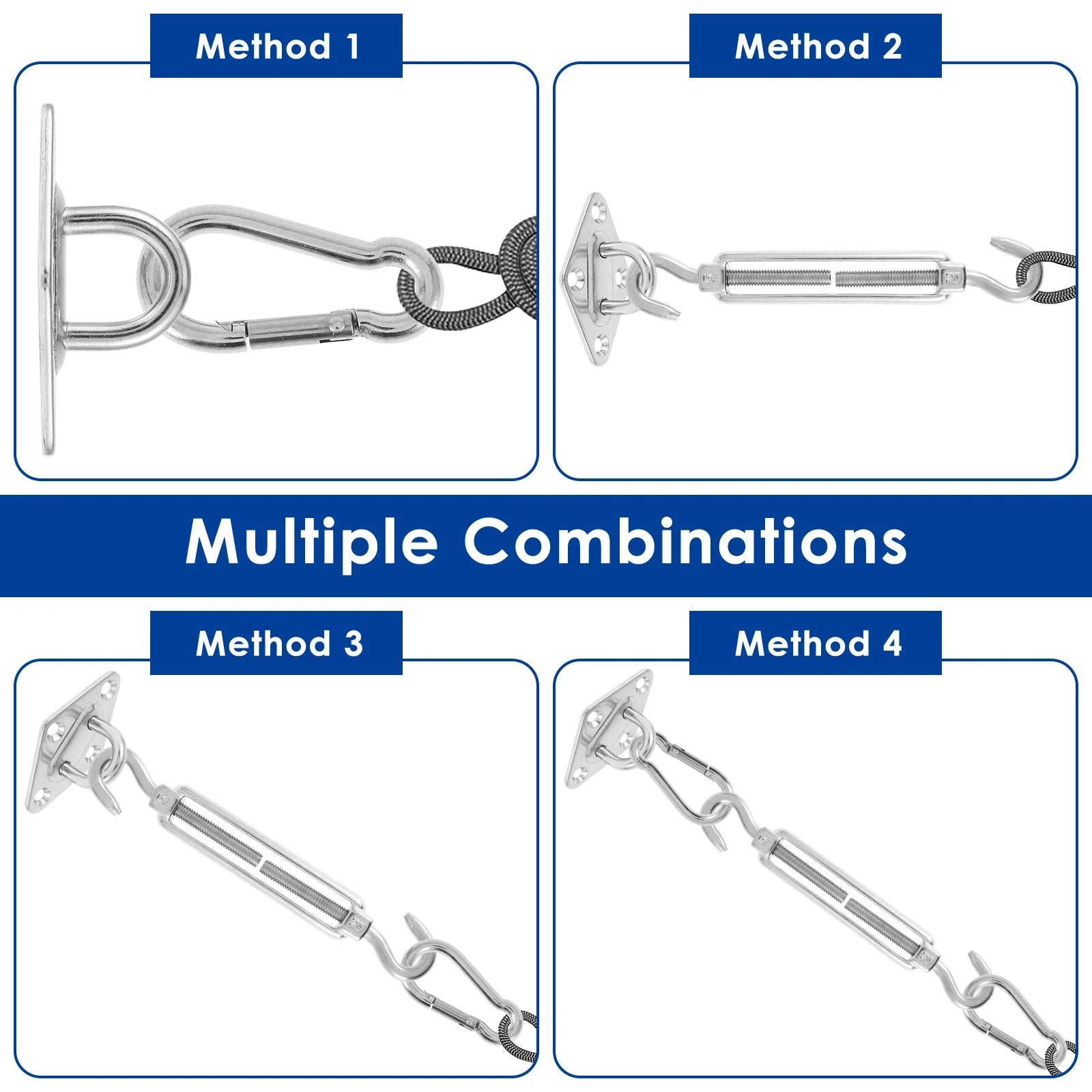 Sun Shade Sail Canopy Accessory 24pcs/set 304 Stainless Steel Hardware Kit Turnbuckle Pad Eye Carabiner Clip Hook Screws Silver