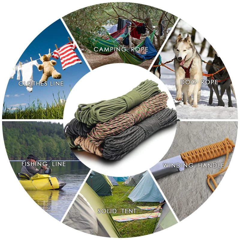 Uses:winding handle, stick handle, body sticks, nunchaku connection rope, bow and arrow wrapped with a rope, field strapping equipment, tents rope, clothesline and so on.