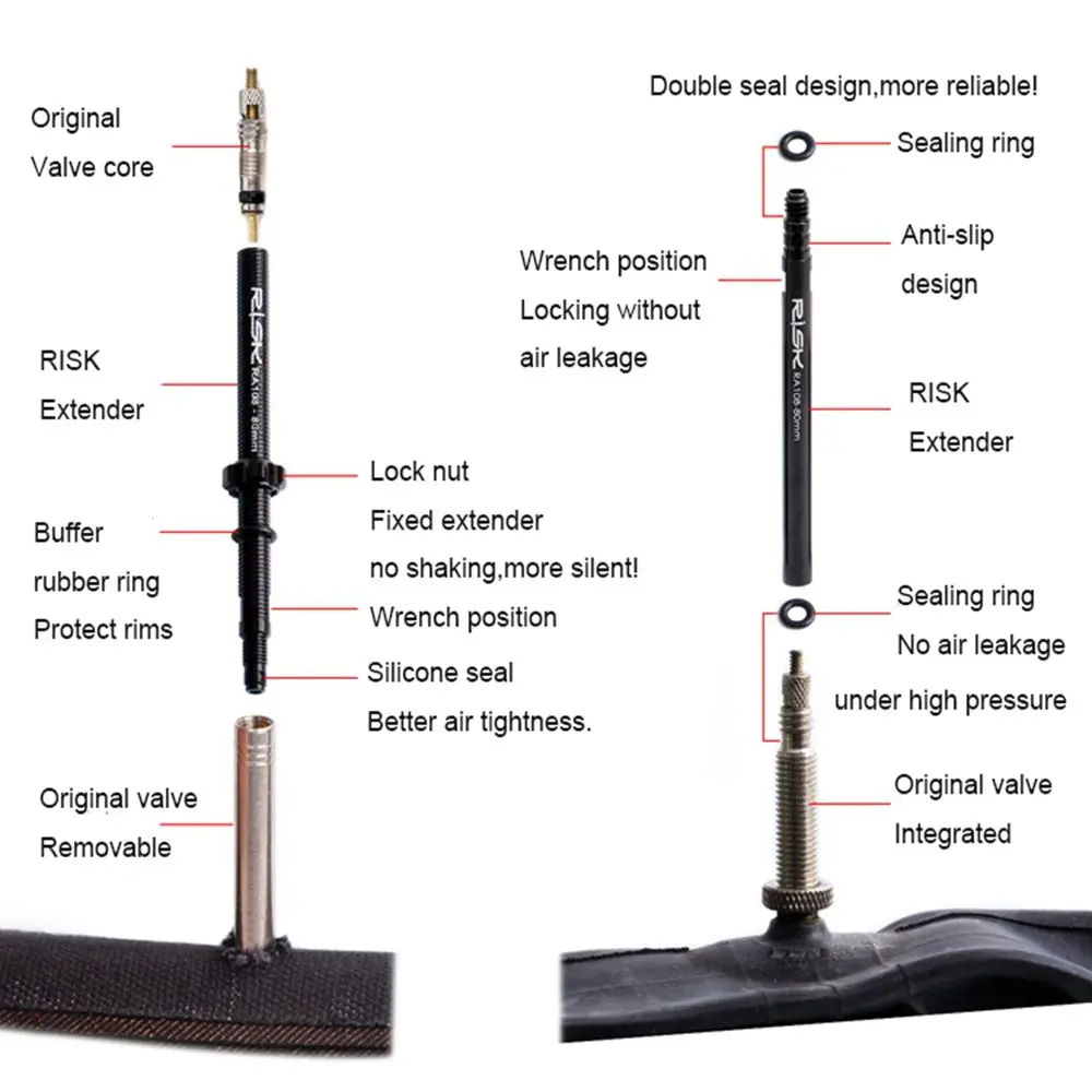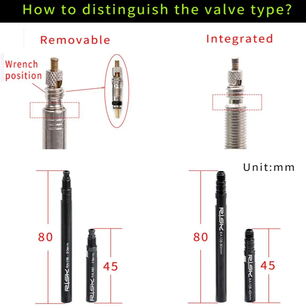 80mm Cycling Protection Accessories Bike Parts Bicycle Valves Nut Inner Tubes Extension Integrated Removable Valve Extender