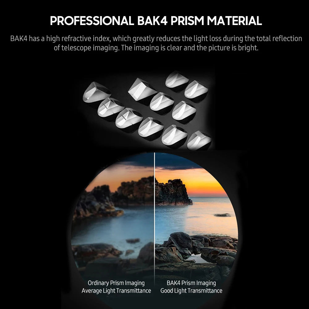 2. BAK4 prism: BAK4 prism is used in binoculars, and the obtained image is brighter and clearer.
