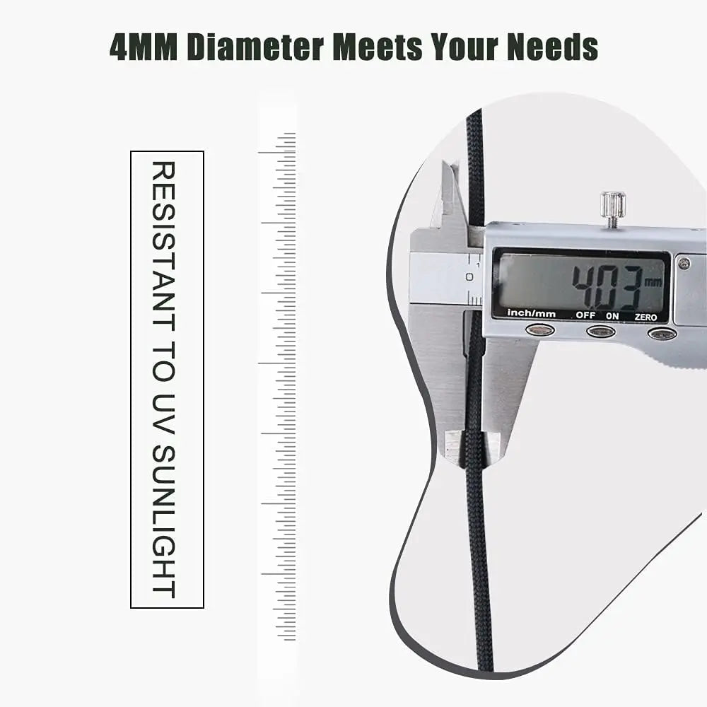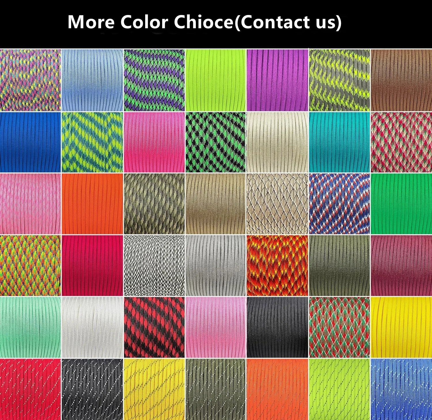650LB Tensile Strength: The 650 paracord of diameter is 5/32” (about 4mm). There are a total of 9 strand inner-core, each of which consists of 3 layers of twisted yarn. The average breaking strength is 650 pounds! And it is dependable, tough and long lasting.