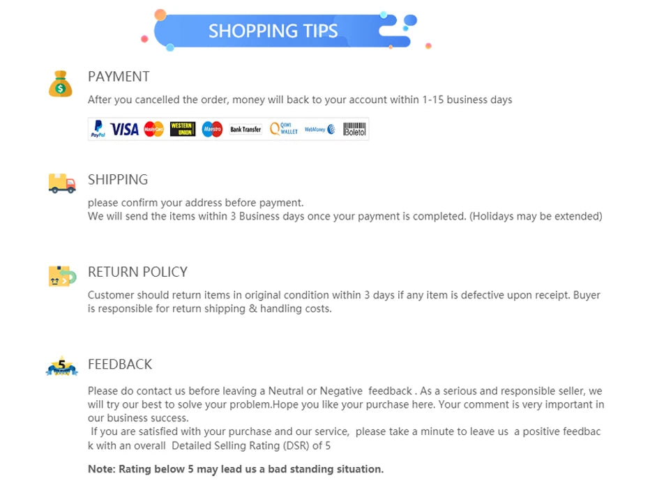 🌍4. As a seller, we promise to check every item before sending and promise not to send the wrong goods.
