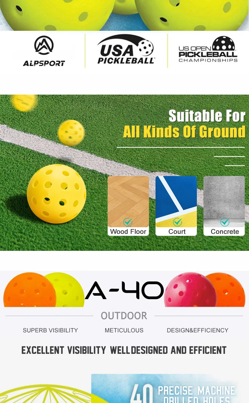 ALP Outdoor Pickleball 74mm Durable 40 Holes 26 Holes 1/3/6/12/100 Pieces/PCS 26g Original USA Professional Pickleball