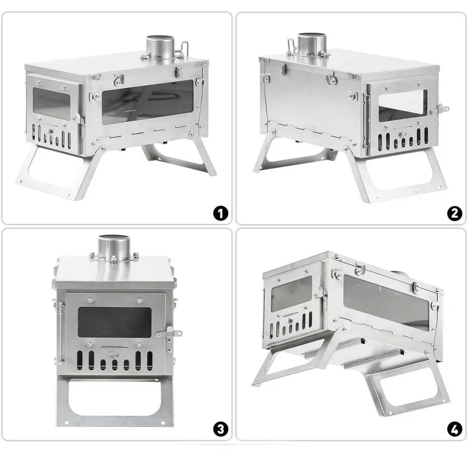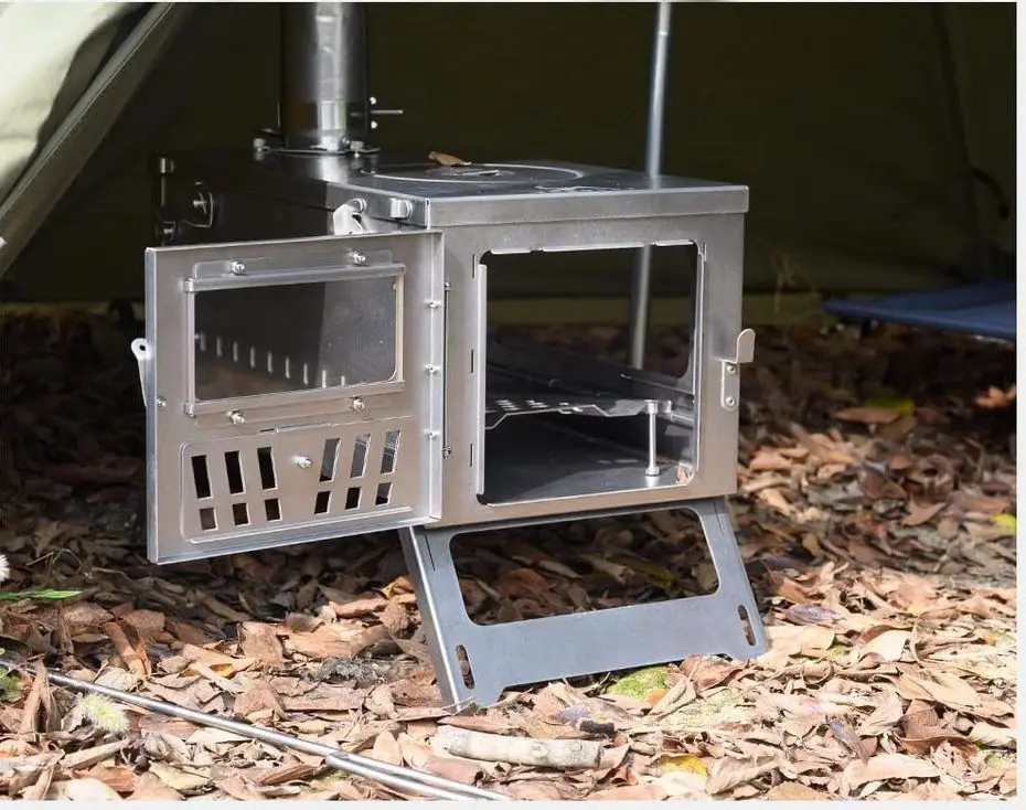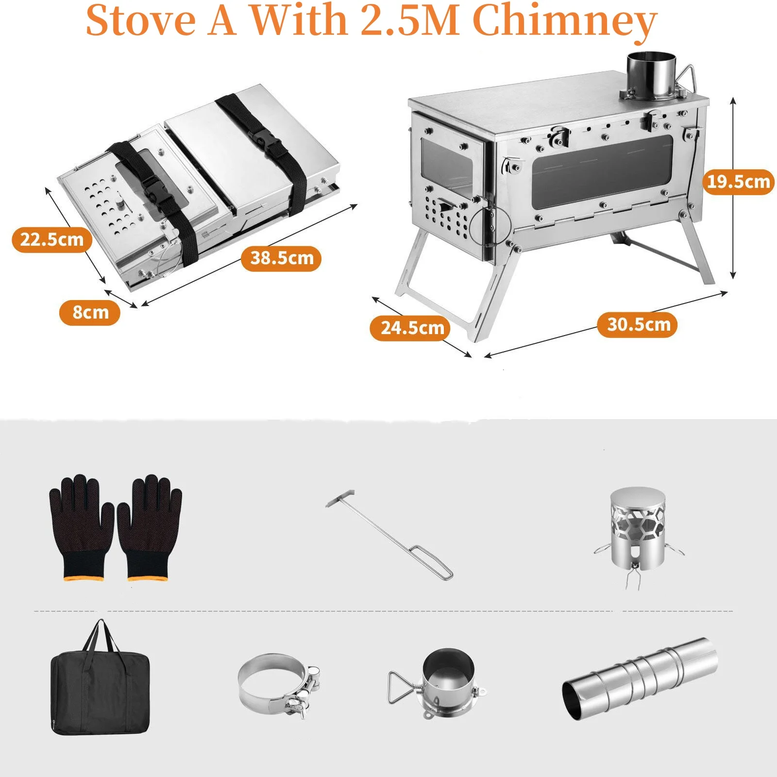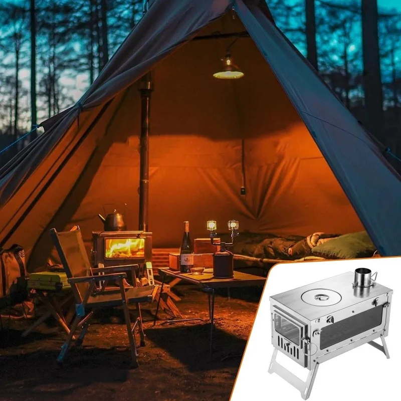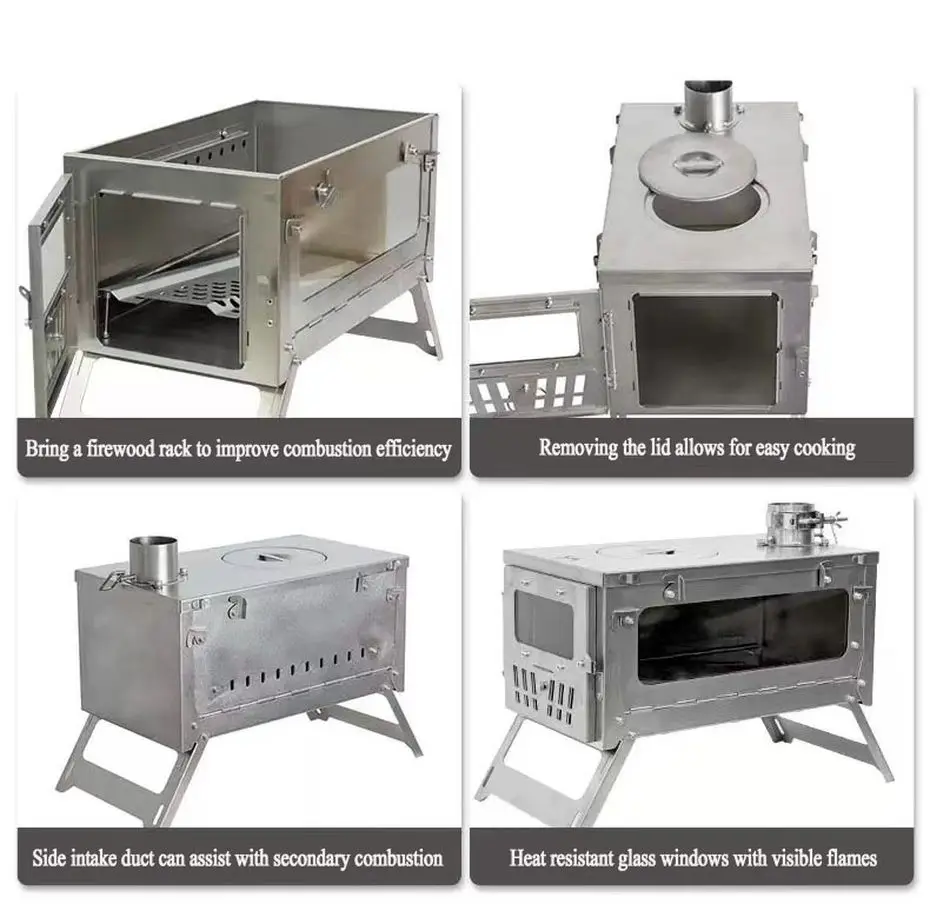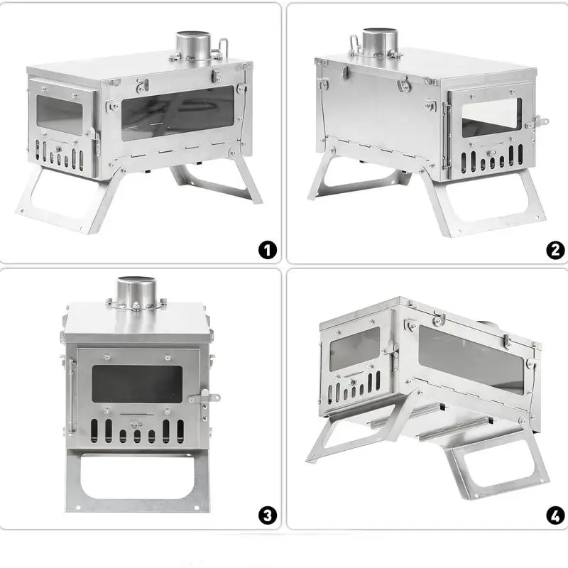 Camping Firewood Stove Tent Wood Heater Outdoor Ultralight Burner Folding Portable Brazier Stainless Steel Furnace with Chimney
