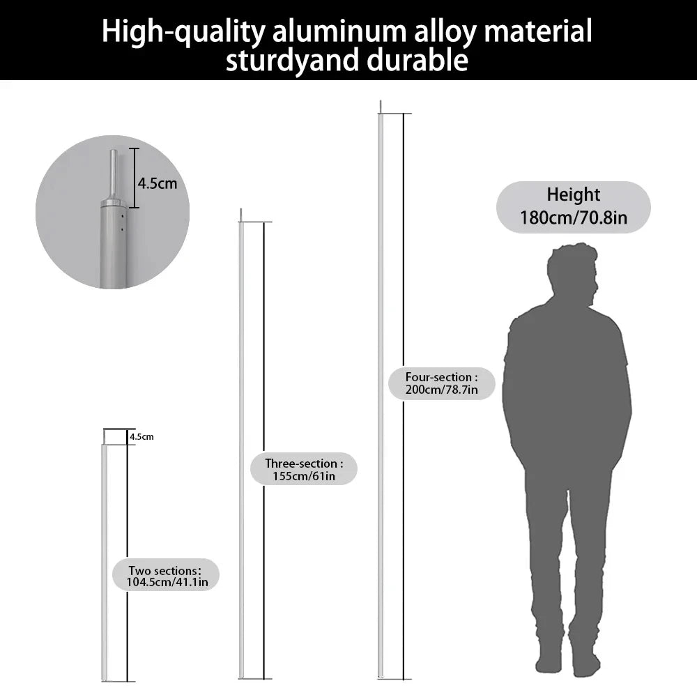 There are two materials for the canopy support rods, steel and aluminum, and the height is consistent at 2m.