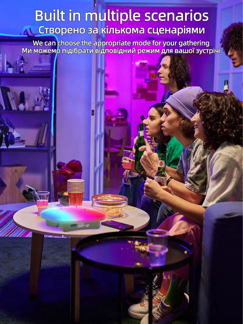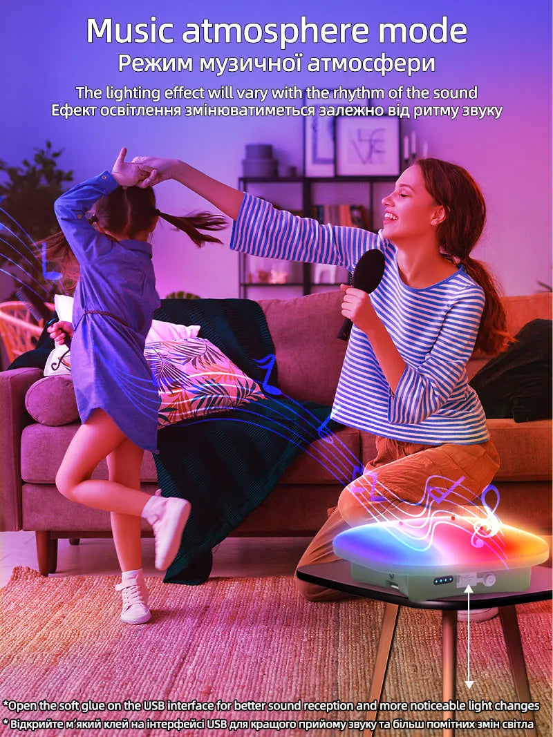 4.MOS-LY01-TY: Can be connected to a mobile phone to launch the smart graffiti app, play music, and adjust the color of the lights, allowing you to experience different lighting effects while playing music.