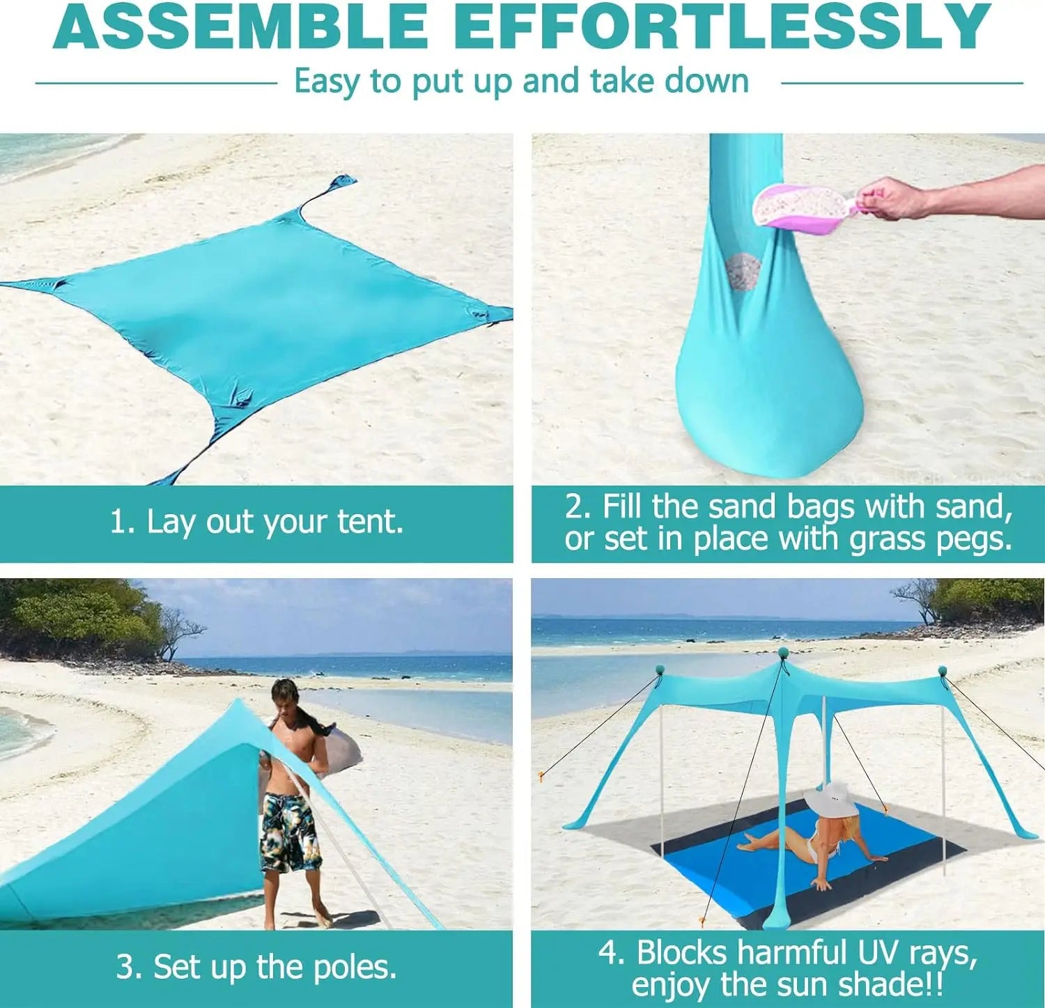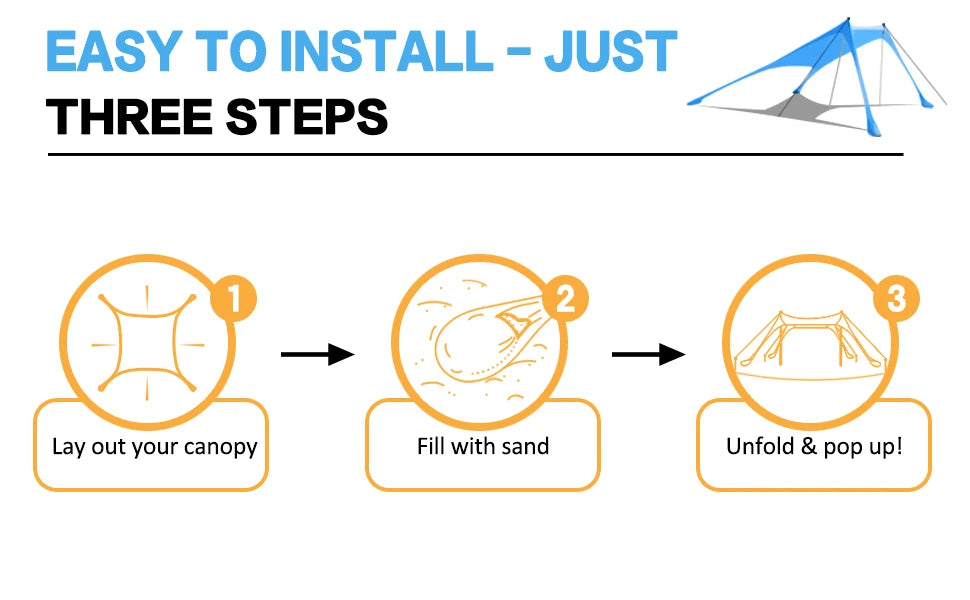 2.Easy to Use: Sand or rocks are used as natural anchoring materials for beach tents. It serves as a comfortable spot to watch the waves, football games, or picnics and is lightweight, portable, and waterproof.