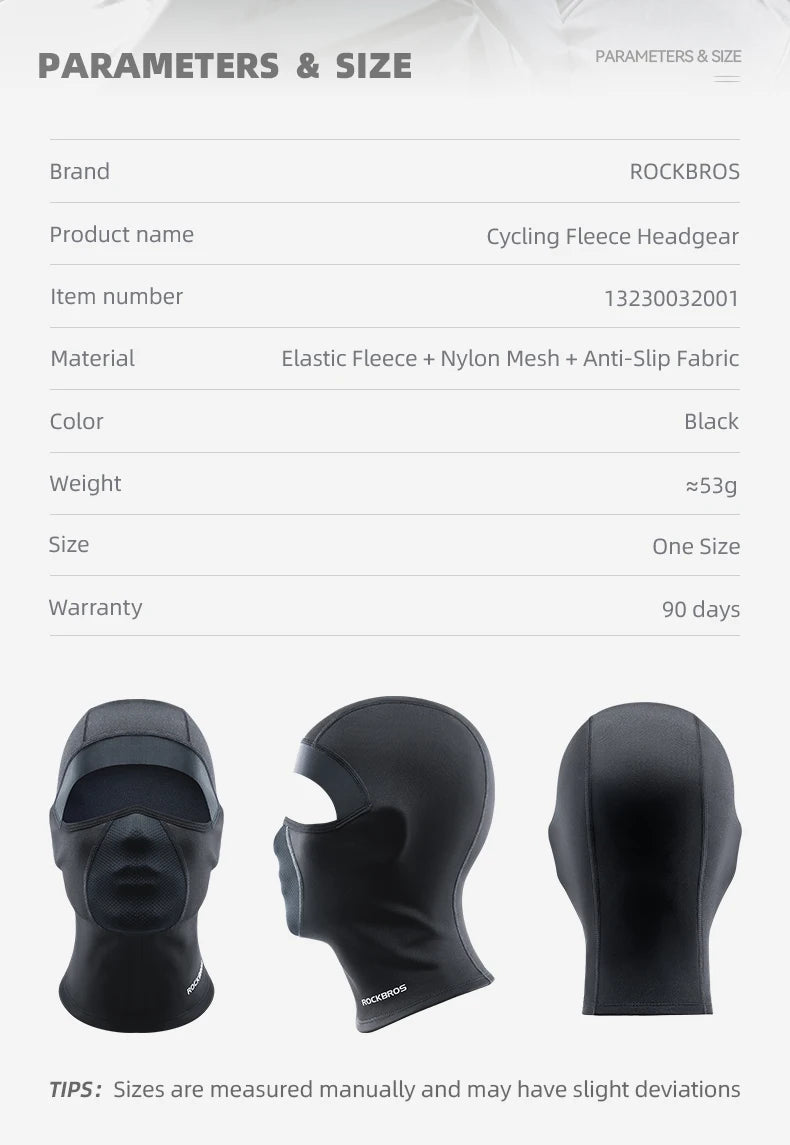 ROCKBROS Bicycle Fleece Head Mask Windproof Cycling Face Mask Balaclava Breathable Warm Bike Equipement Skiing Fleece Headgear
