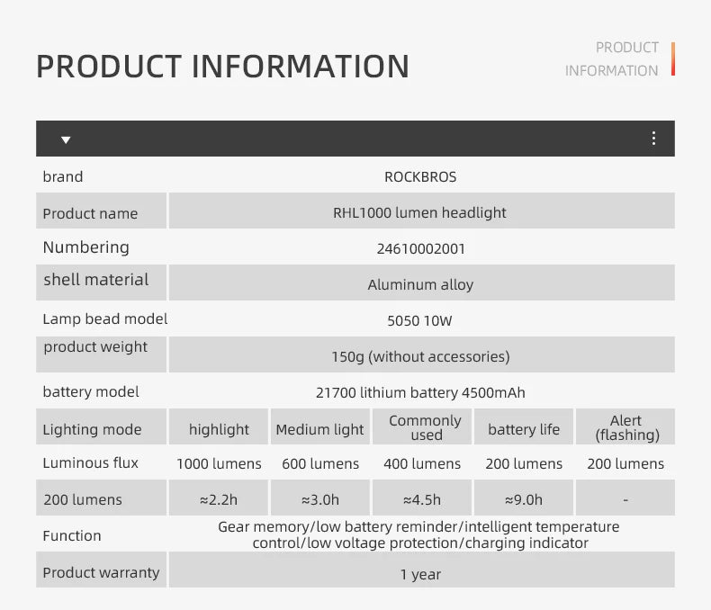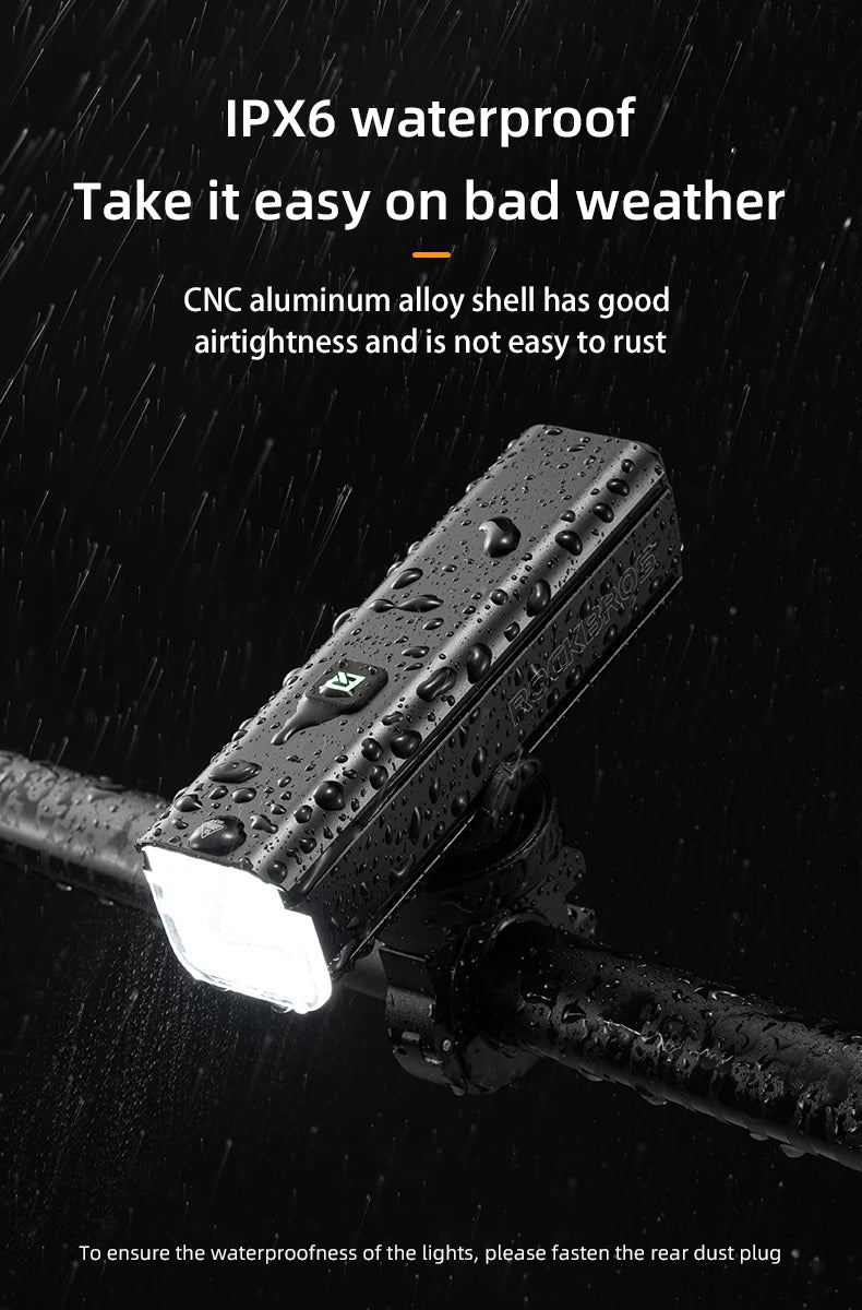 ROCKBROS Bicycle Light 1000LM 4500mAh Bike Light IPX6 Flashlight Aluminum Front Lamp Type-C Charging MTB Road Cycling Highlight