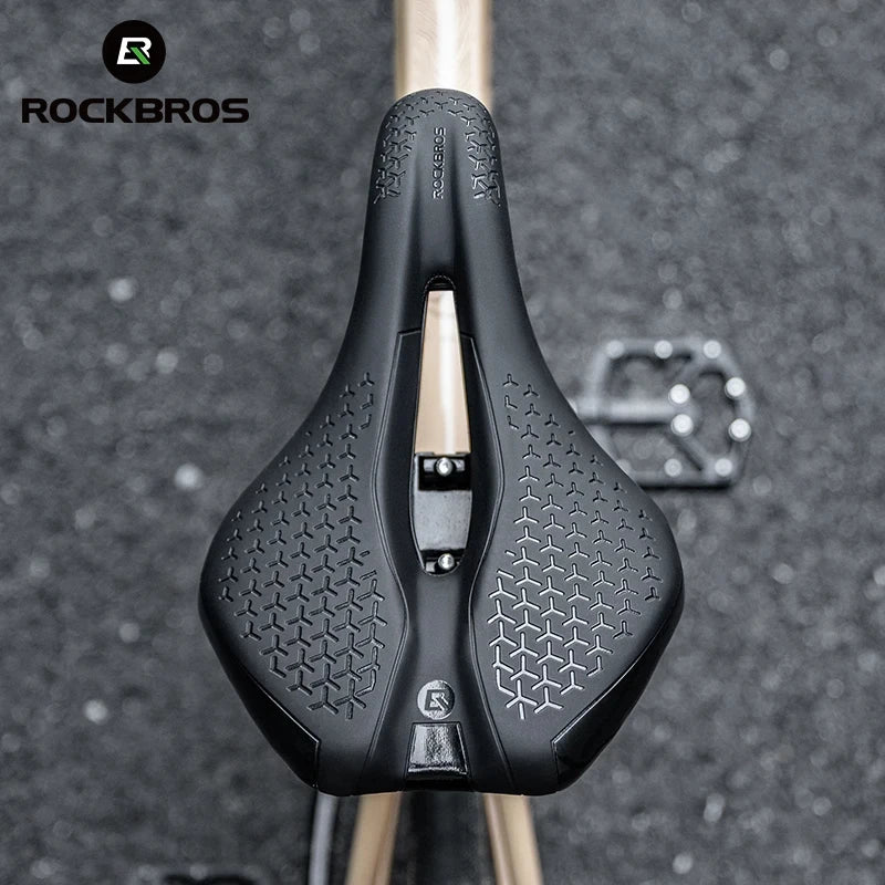 ROCKBROS Bicycle Saddle Hollow Breathable Shockproof Cycling Seat PU Non-Slip Leather Cushion Lightweight MTB Road Bike Saddle