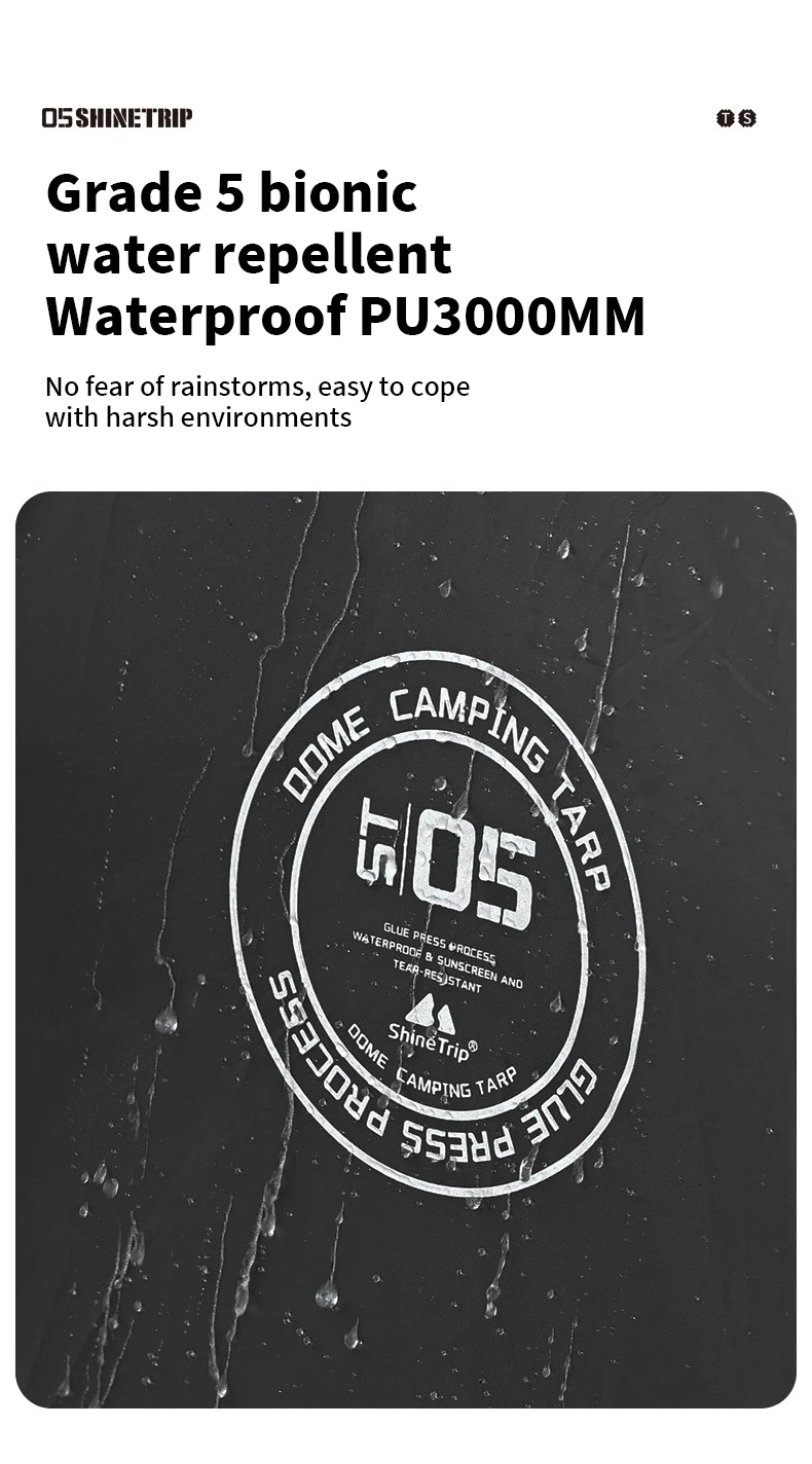 ShineTrip Outdoor Silver Coated Canopy Rainproof And Sunscreen Self-driving PU3000MM Waterproof Camping Sunshade Tent Dome