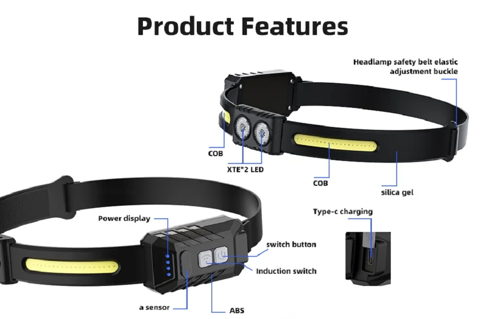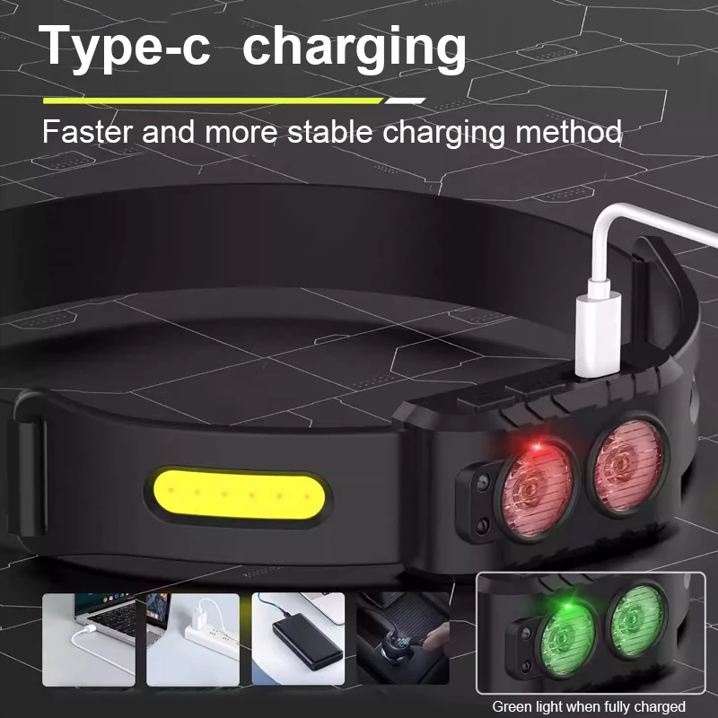 USB Rechargeable LED Sensor Headlamp XPE+COB Headlight Led Head Torch Camping Search Light Head Flashlight for Fishing Lantern