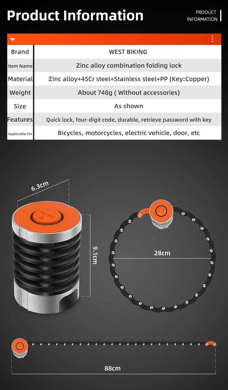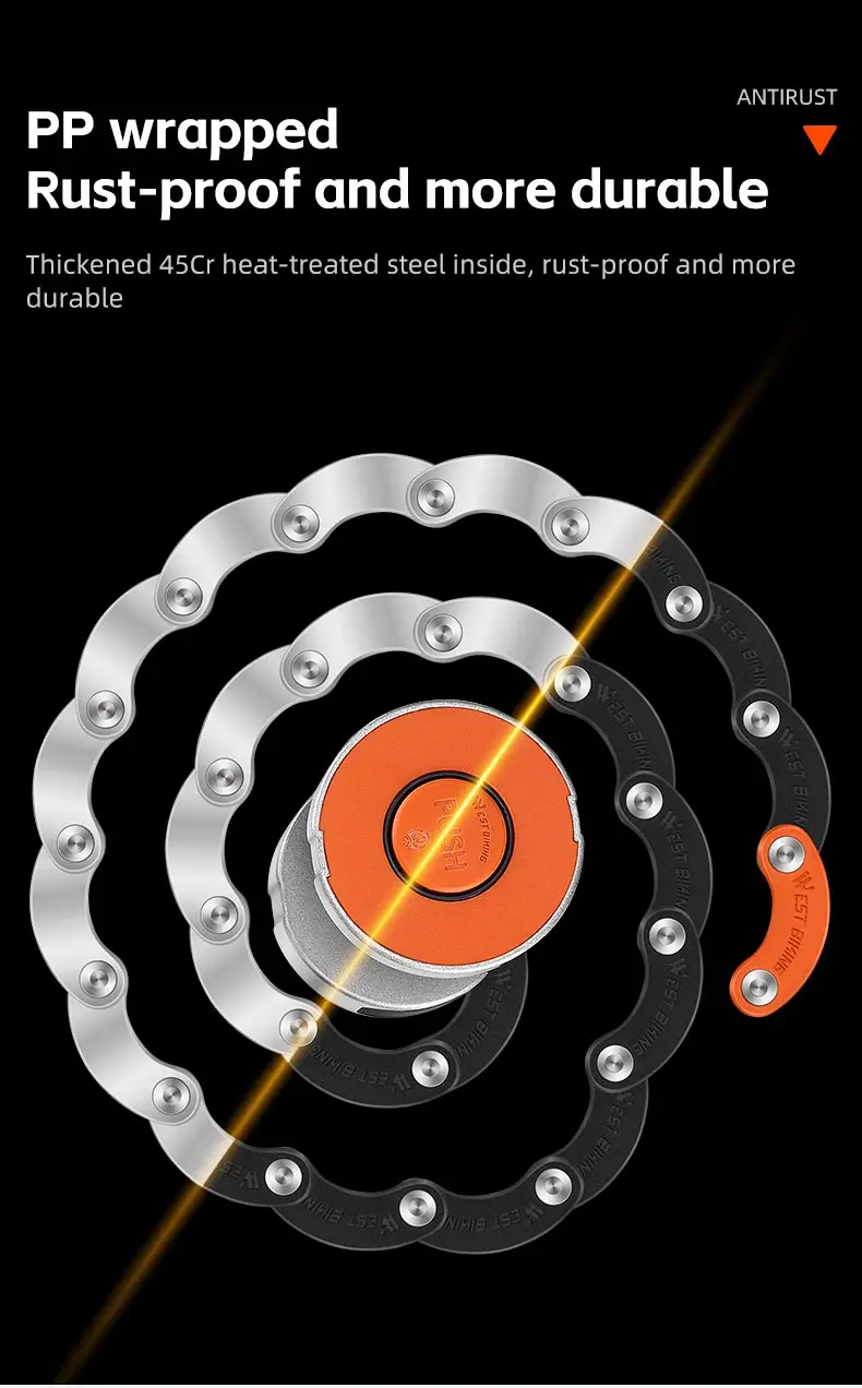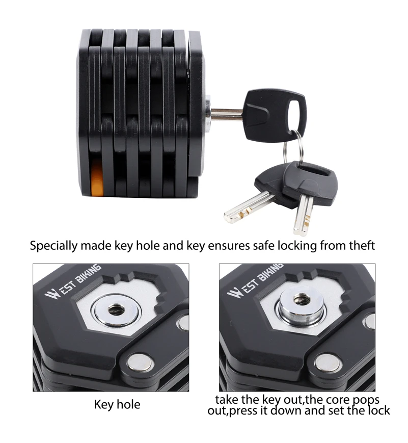 WEST BIKING Foldable Bike Lock Key Password Security Anti-Theft Lock MTB Road Bicycle Scooter Electric Bike Cycling Chain Lock