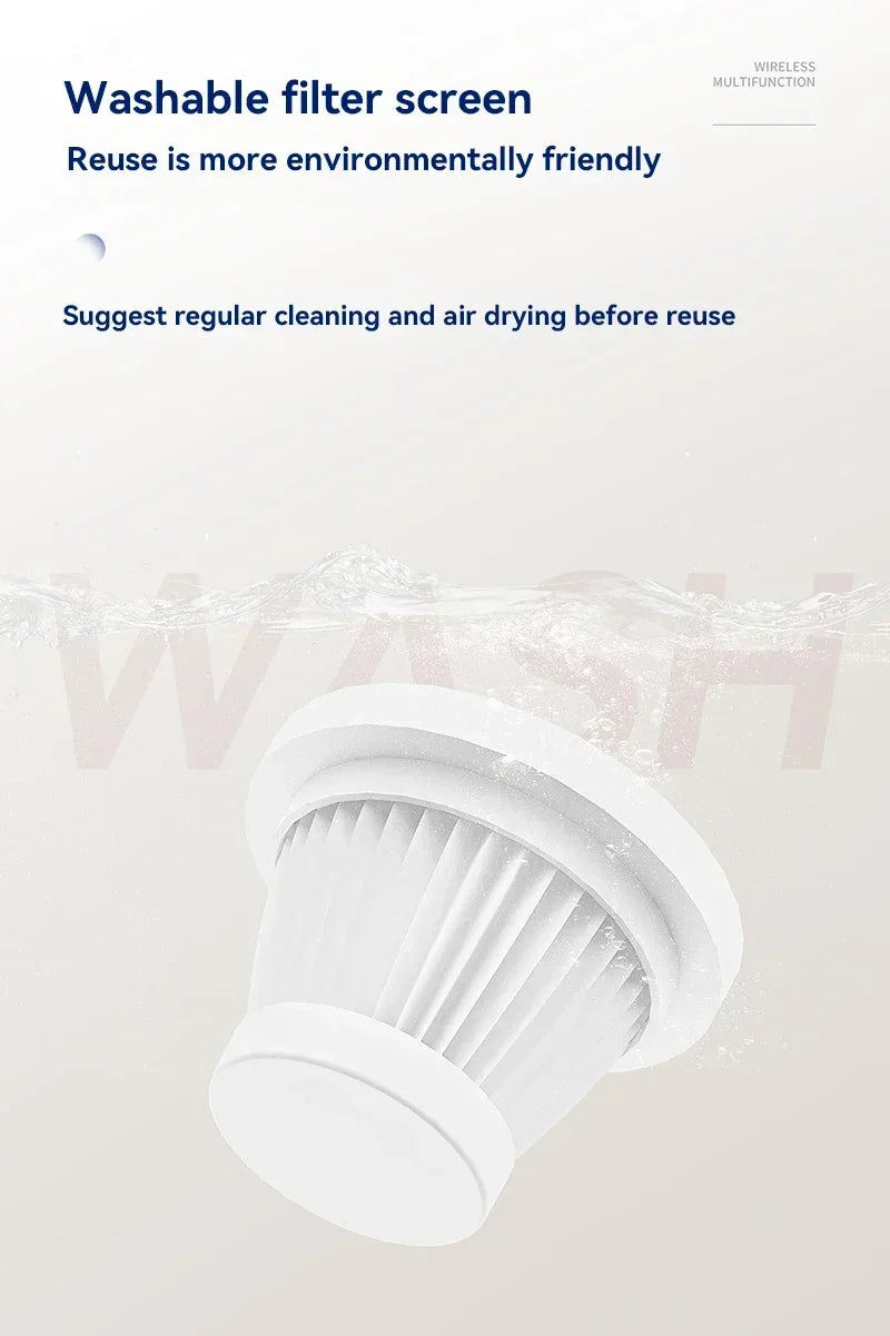 【Professional Accessories Solve More Cleaning Problems】The dusting brush and crevice tool can reach most cup holders and car storage compartments. Extension tubes keep dust off baseboards, blinds and pesky cobwebs in ceiling corners. Use additional accessories to cover every inch of your home. Handheld vacuum cleaner with removable, washable and reusable durable HEPA filter. After cleaning the filter, let it dry before putting it back into the vacuum.
