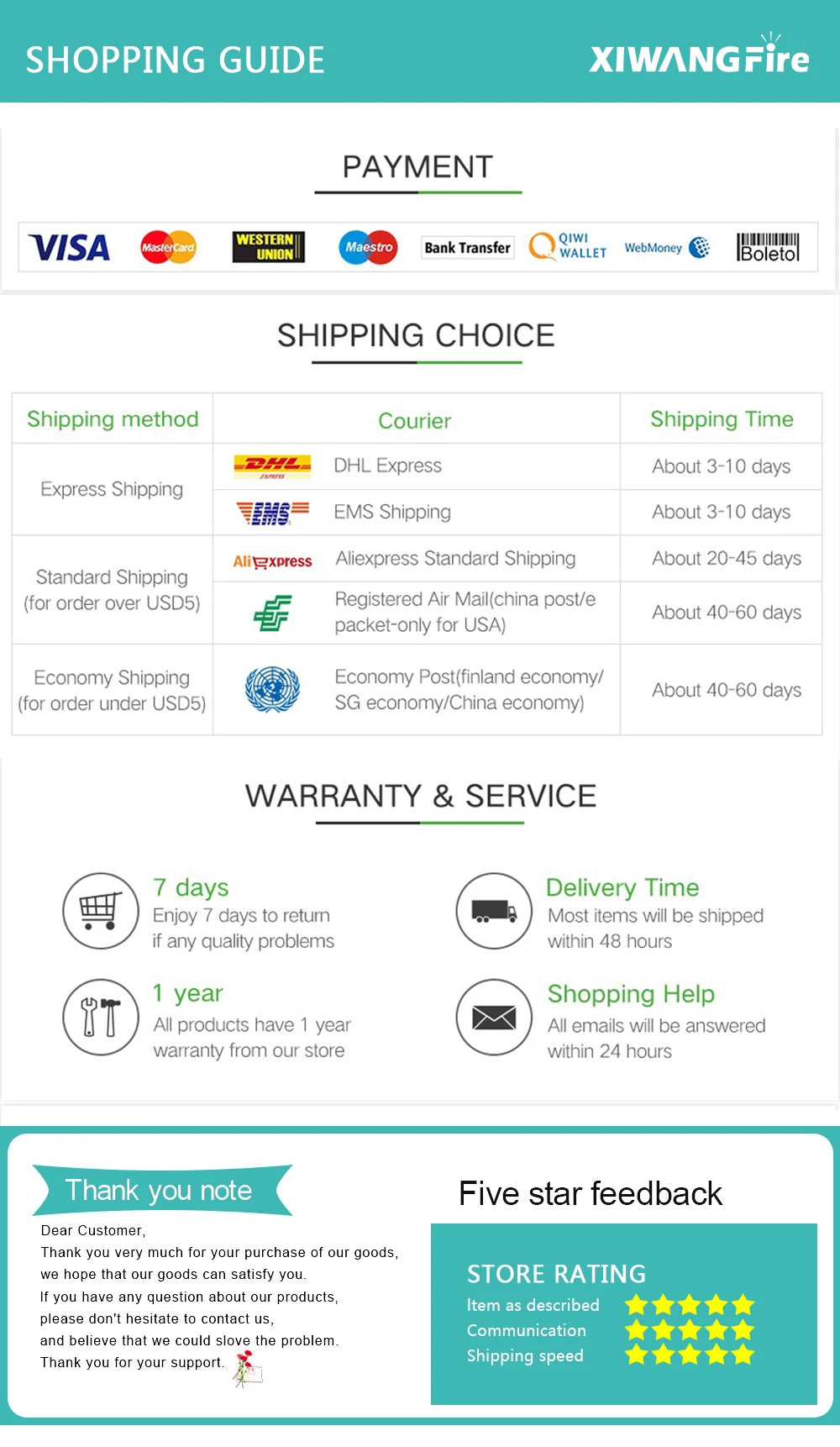 We will leave POSITIVE FEEDBACK after receiving the payment.